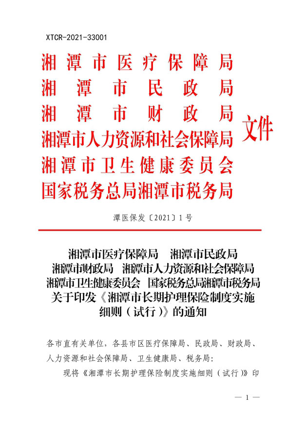 潭醫(yī)保發(fā)〔2021〕1號湘潭市長期護理保險實施細則